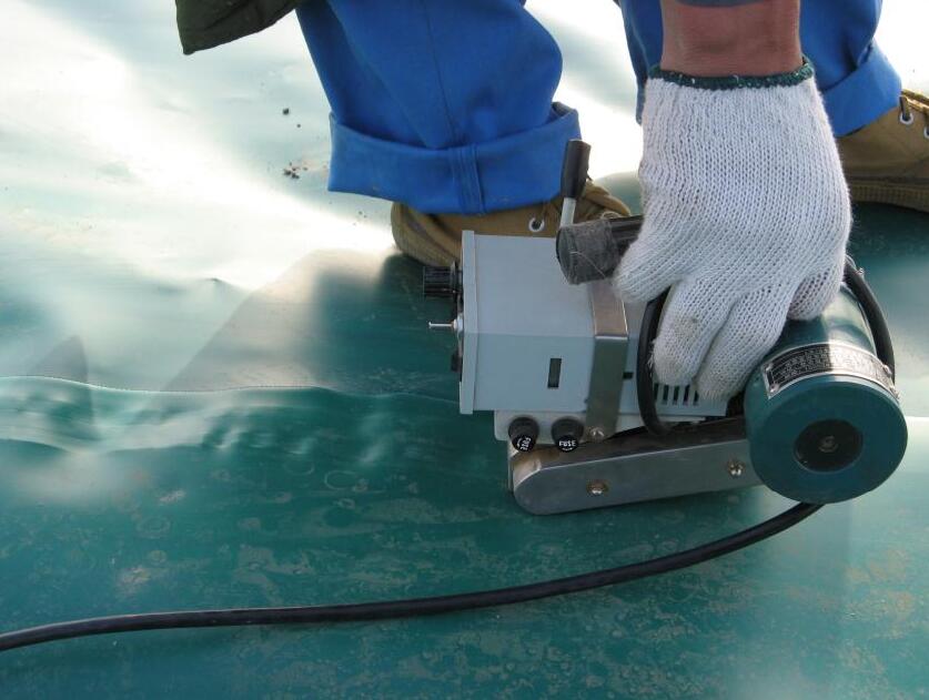 土工膜的試驗性焊接要求,焊接工作開展之前必須進行試焊,試焊應在裁剪的土工膜樣品上進行,樣品長度不小于1米,寬不小于0.2 米,每天早、中開工分別要做一次試焊。試樣用拉力機,進行現場剝離及剪切試驗,焊縫不被撕拉破壞,母材被撕裂開為合格,確保焊接機性能,焊接方法,焊接溫度等外界條件無誤后,征得監(jiān)理工程師或業(yè)主代表同意后,用已調節(jié)好工作狀態(tài)的熱楔焊機逐幅進行正式焊接。